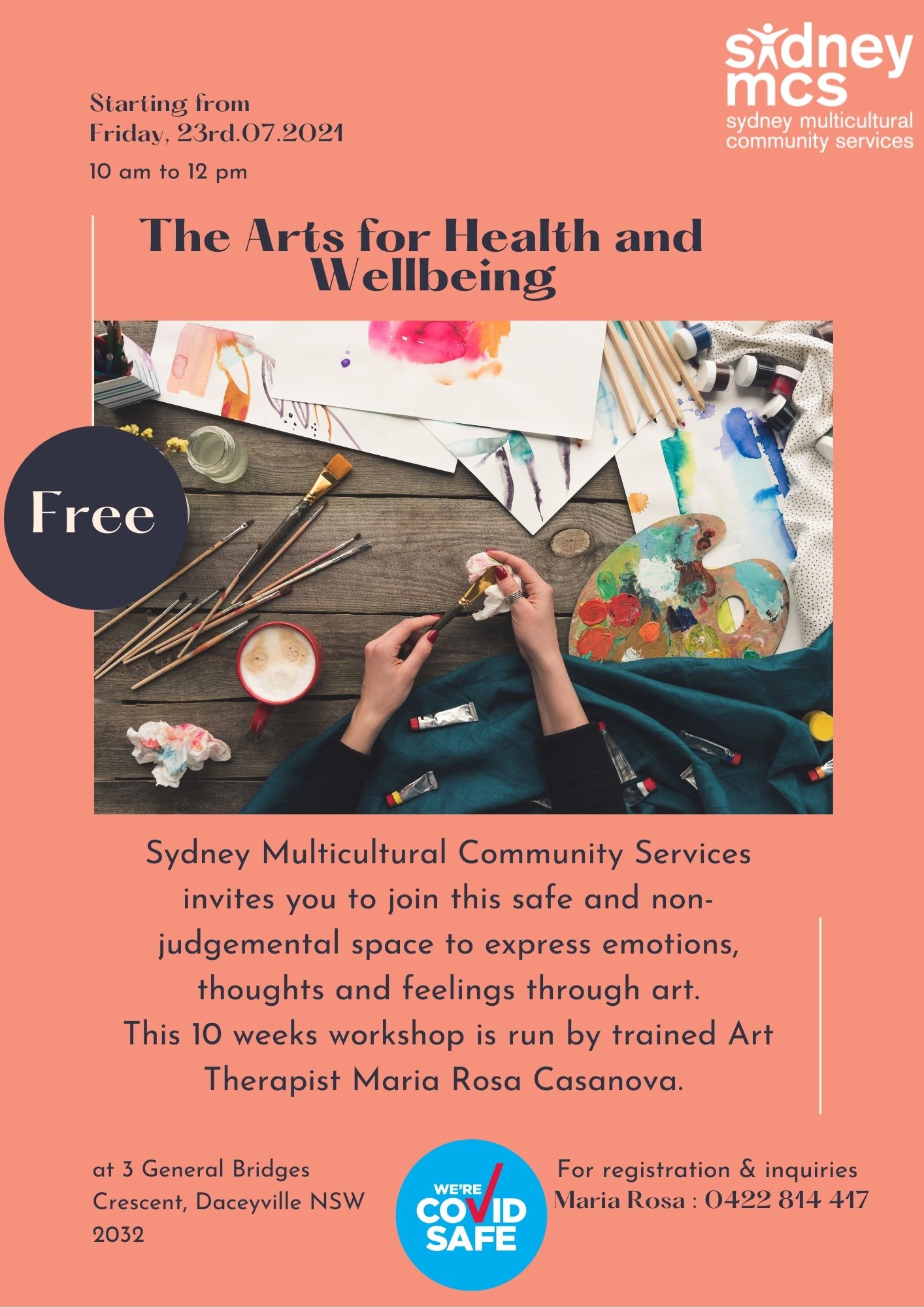 The Arts for Health and Wellbeing Sydney Multicultural Community Services invites you to join this safe