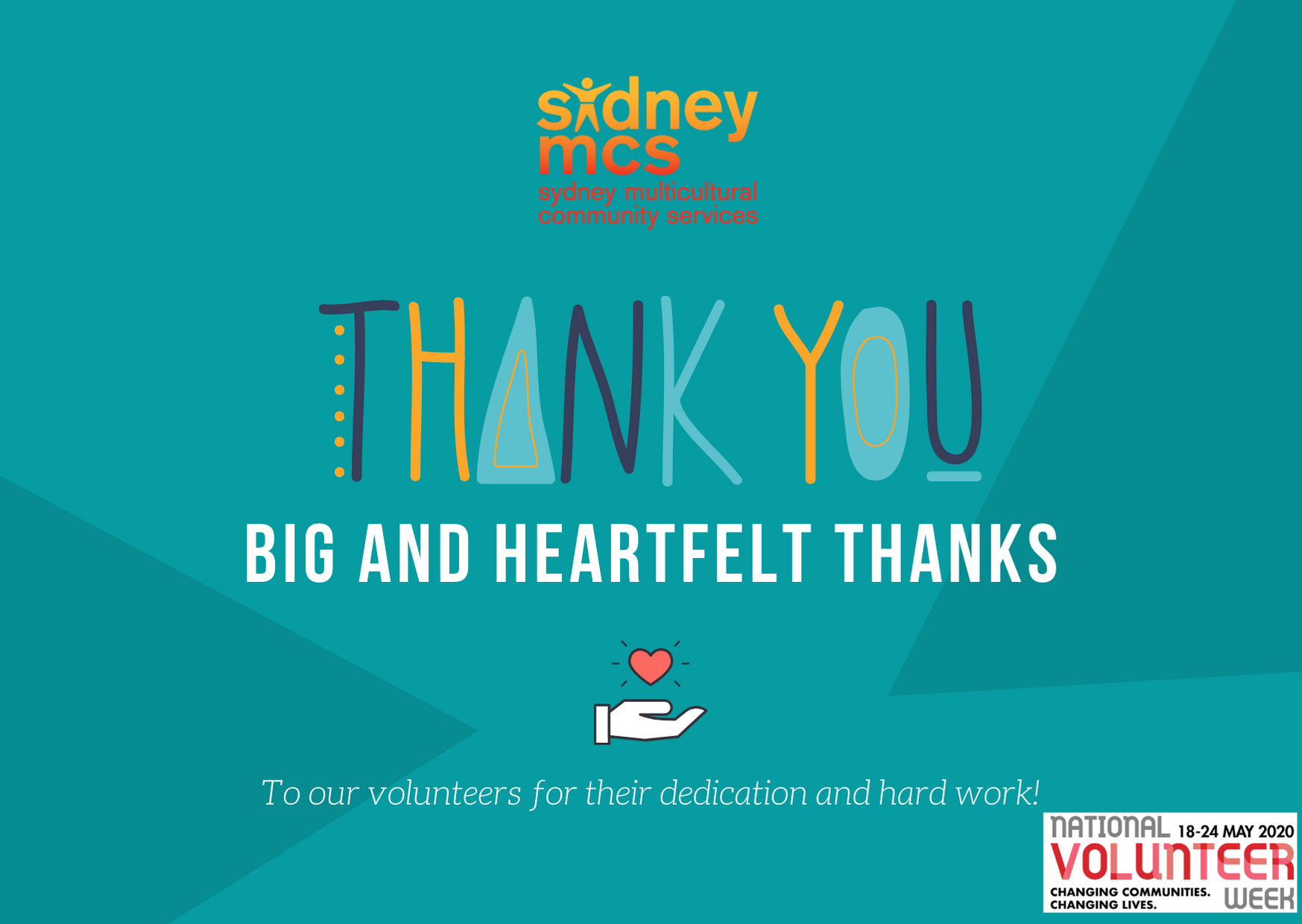 Volunteers play such an important role at Sydney Multicultural Community Services. As a multicultural organisation, our volunteers are also incredibly diverse, they represent 20 different language groups, and we pride ourselves on our multilingual volunteers who can connect with the client’s language and culture.