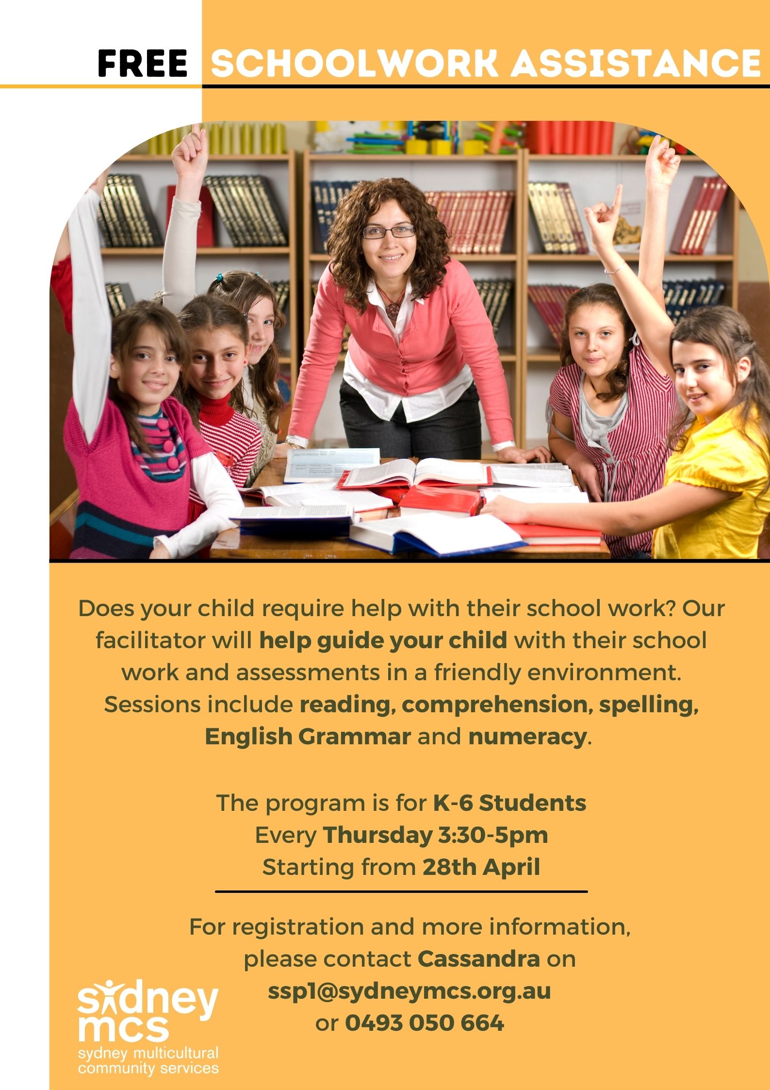 Sydney Multicultural Community Services is offering FREE schoolwork assistance to K – year 6 students who live in the Bayside,