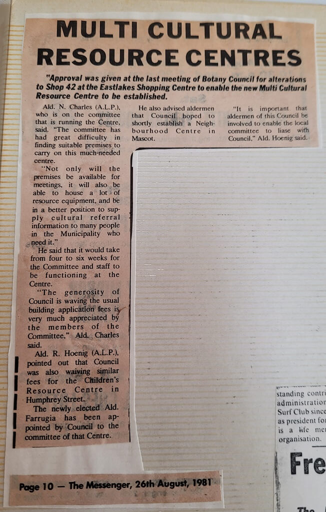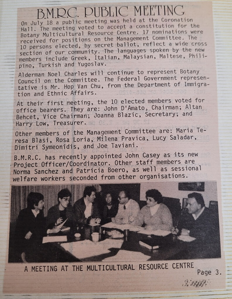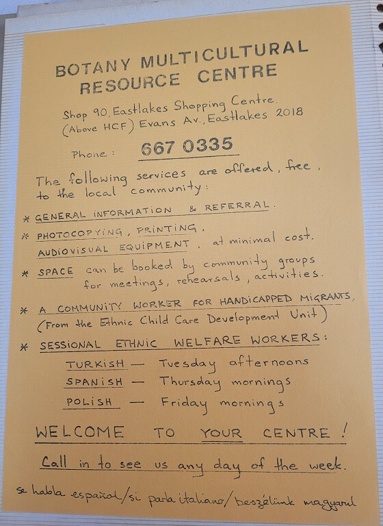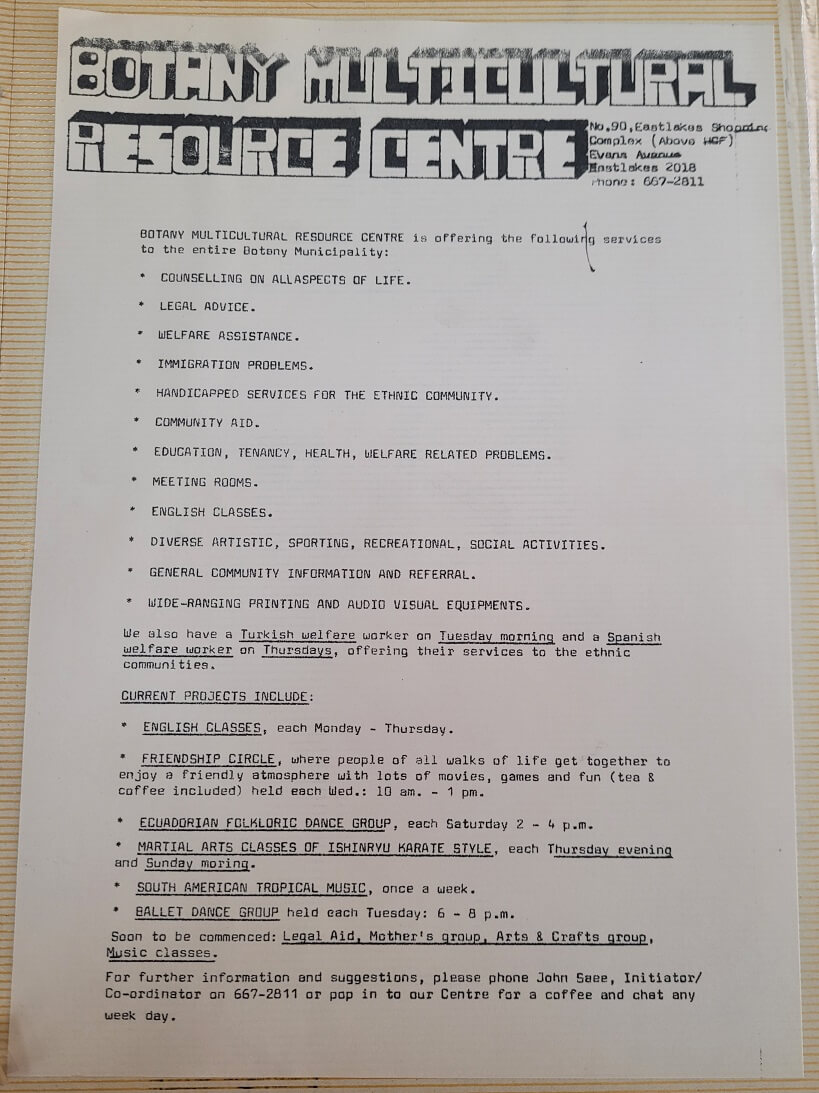 Botany Migrant Resource Centre was one of twelve Migrant Resource Centres in New South Wales, however this changed when our core funding was lost in January 2004. With the Department of Immigration and Multicultural and Indigenous Affairs no longer providing core funding to our organisation, Botany Migrant Resource Centre has become Sydney Multicultural Community Services, encompassing a new direction and focus.